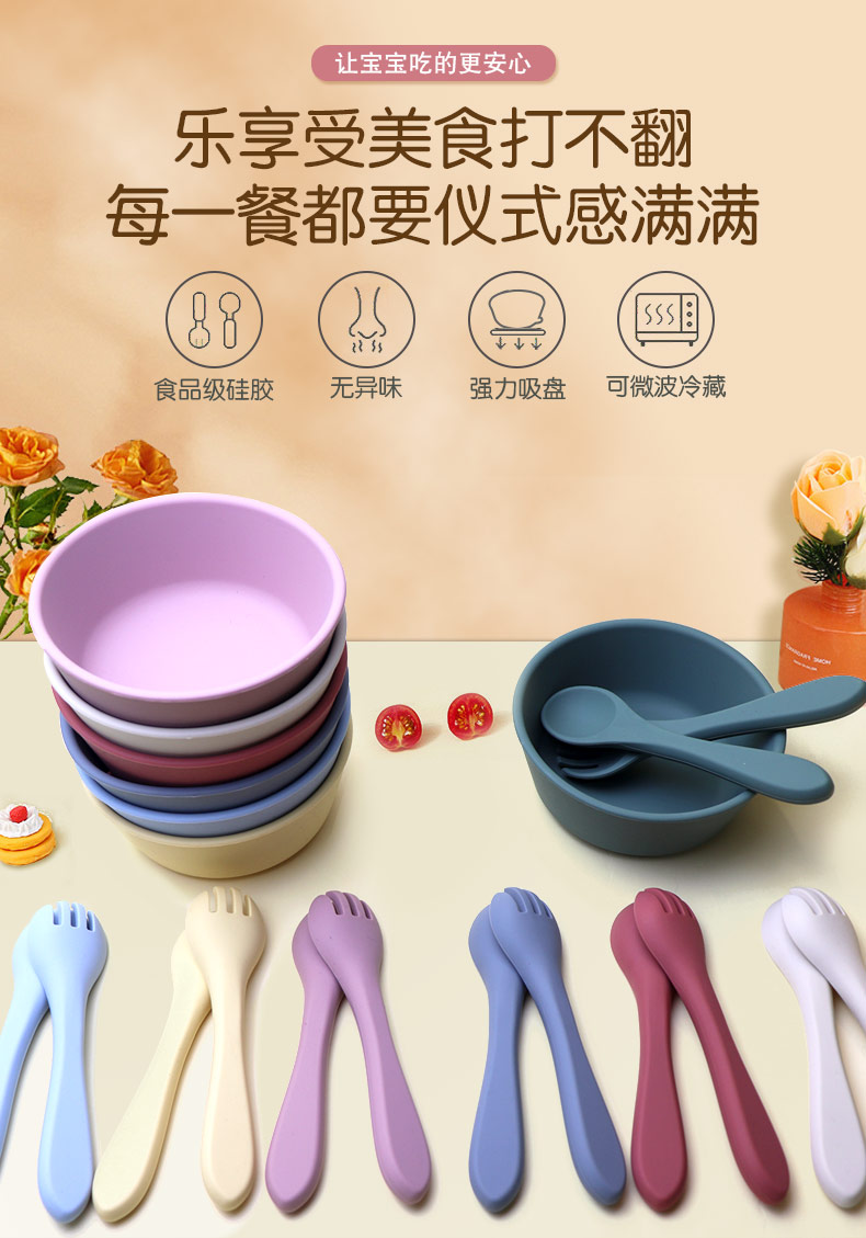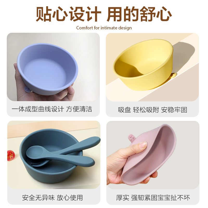 新款儿童硅胶碗 宝宝辅食吸盘碗 母婴儿童餐具硅胶餐盘