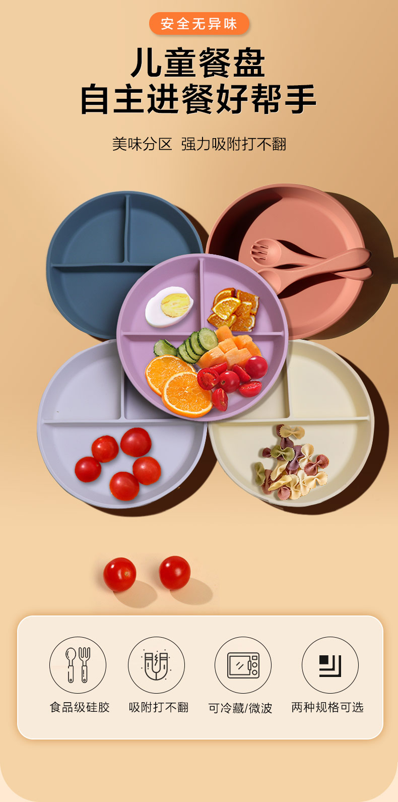 宝宝硅胶餐盘吸盘式儿童餐具