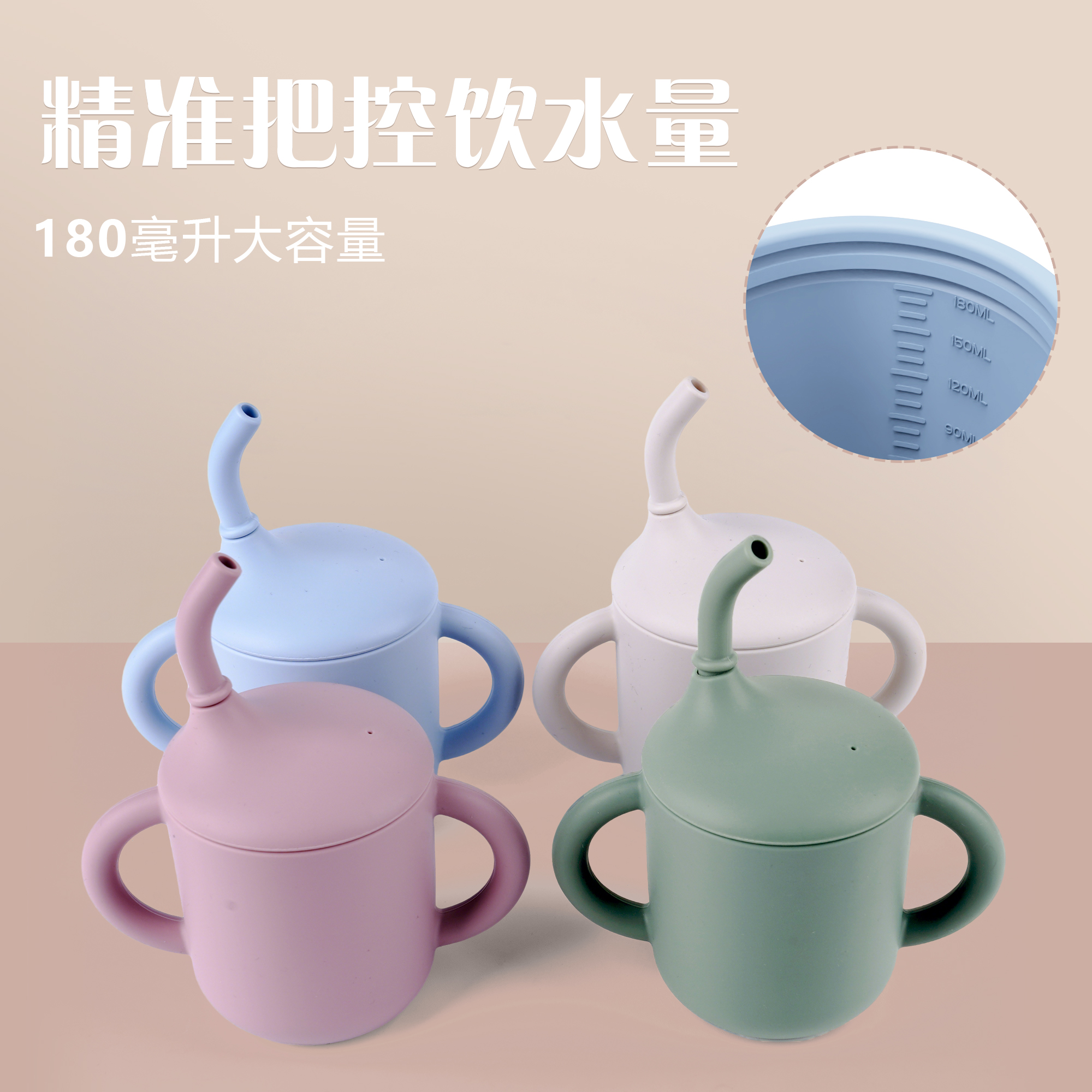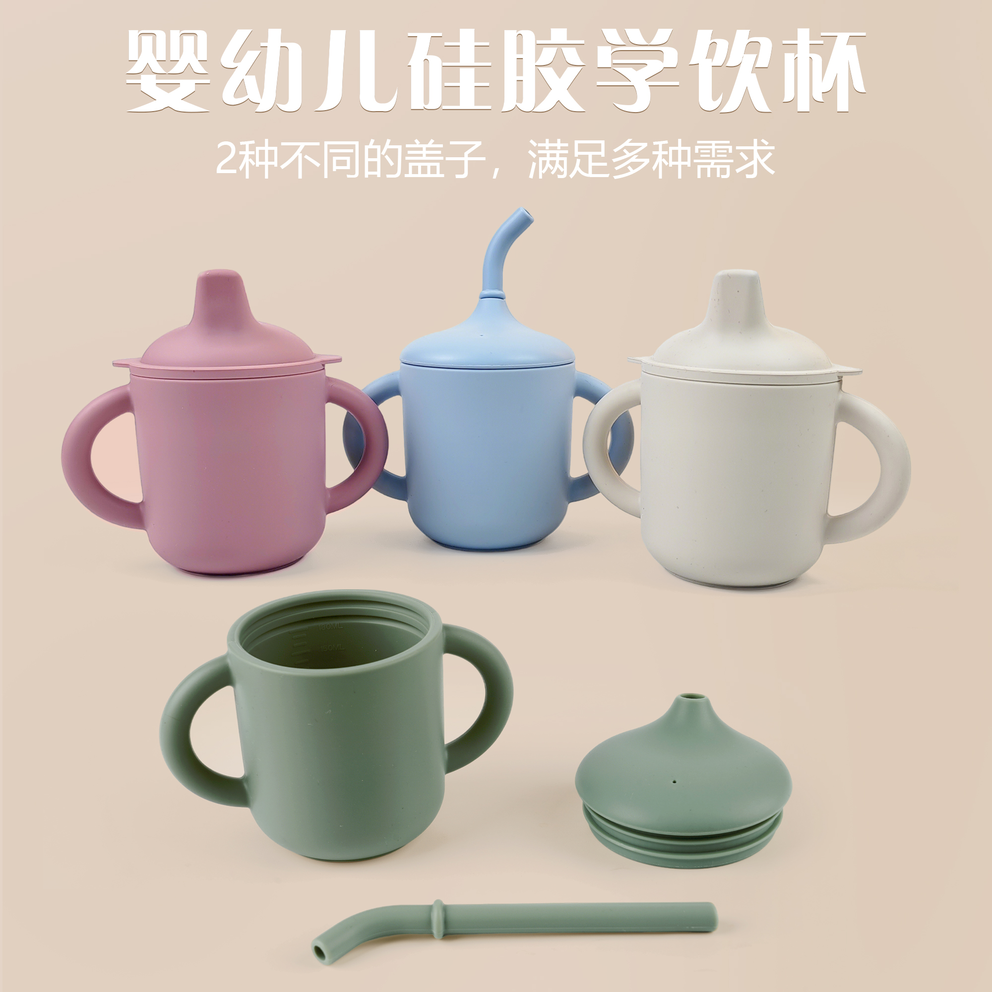 宝宝硅胶直饮鸭嘴杯喝水杯双耳学饮杯双盖合一
