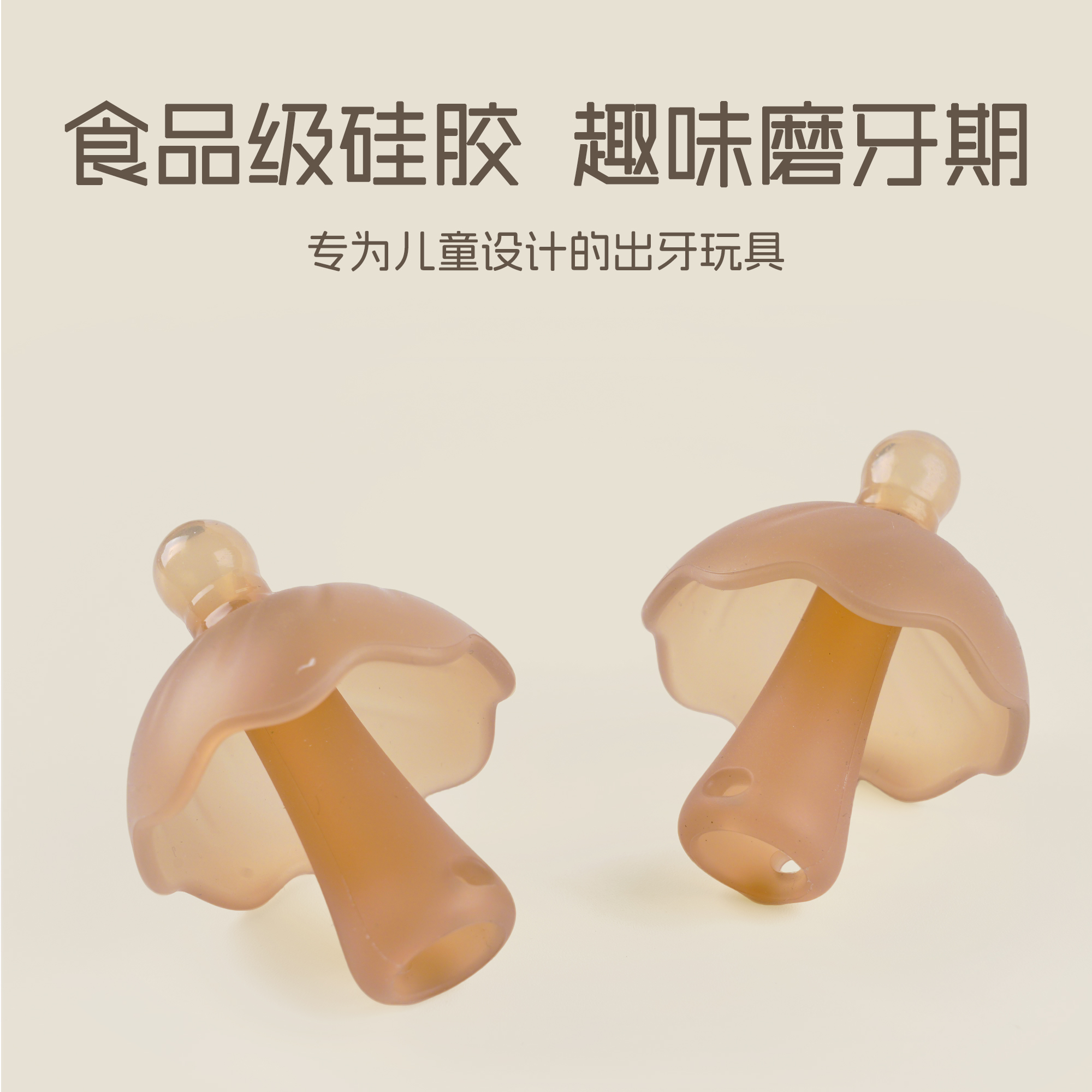 婴儿小蘑菇安抚牙胶食品级硅胶可水煮宝宝防吃手神器硅胶牙胶定制